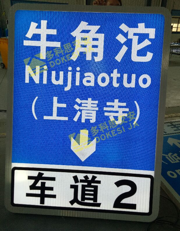 LED全透型主动发光标志,常用名称有:"全透面板显示型主动发光标志”、“内置照明发光标志”、“背投式发光标志”和“全透发光标志”等。该款标志制作工艺为:标志面板层整体采用有机透光板,黏附专用透光反光膜,内置LED平板光源板投射标志面层,标志版面整体发光,通过光学计算、调试,保证标志文字、图案、字符等准确视认,整体版面光度均匀。