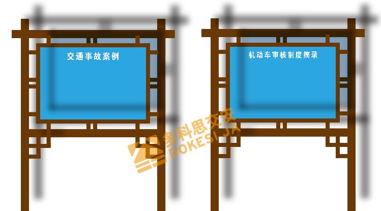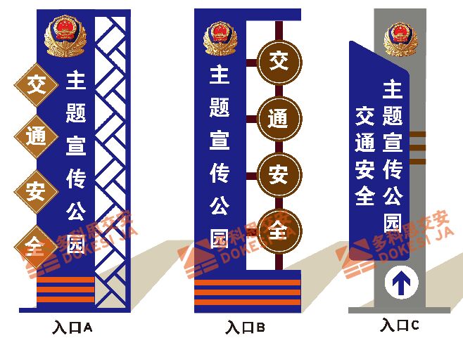 随着道路路网覆盖面的不断增加,机动车保有量的日新月异,交通事故已成为和平时期对人类生命安全构成威胁的重要因素,在做好交通安全规划设计与交通安全设施设置的同时,各地交管部门都在采用不同的方式,加大对交通安全的宣传力度,“交通安全主题公园宣传”就是其中一种比较创新有效的宣传方式,利用公园的空间位置和夜晚散步的大流量行人,通过设置相关交通安全主题宣传标识,对散步的人群实施静态交通安全宣传,达到提升区域驾驶员、非机动车骑行者、行人的交通安全思想意识。参考宣传标识如下: